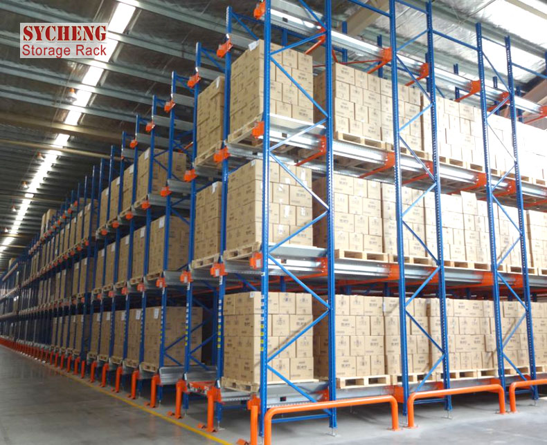 1.采用穿梭式貨架,可以根據(jù)倉庫尺寸,僅有1條叉式作業(yè)通道,順著物流的方向布置;