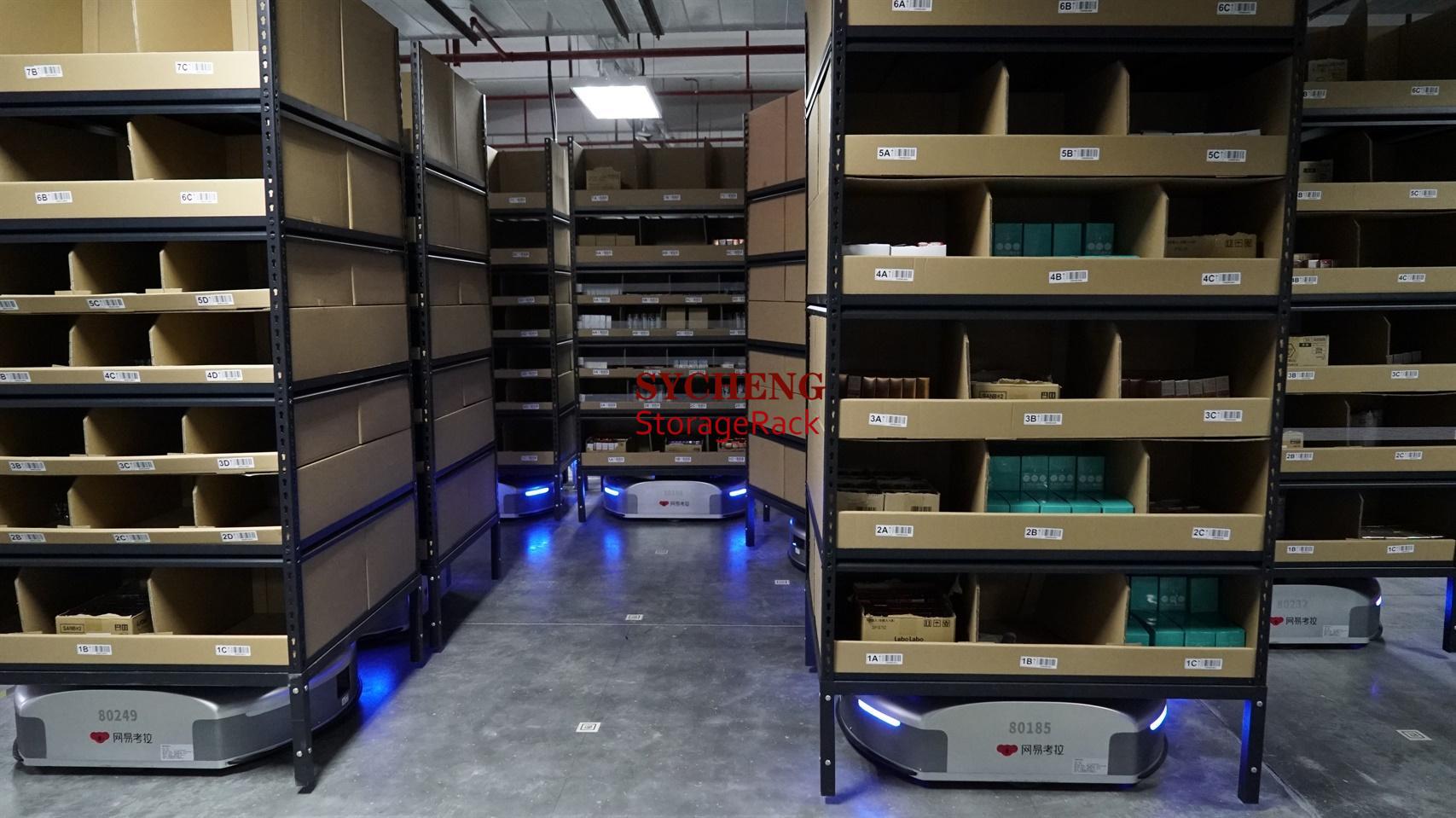 運送作業(yè)臺,完成揀選后再將貨架送回原來的位置。這樣商品的揀選不再是人追著貨架跑,而是由