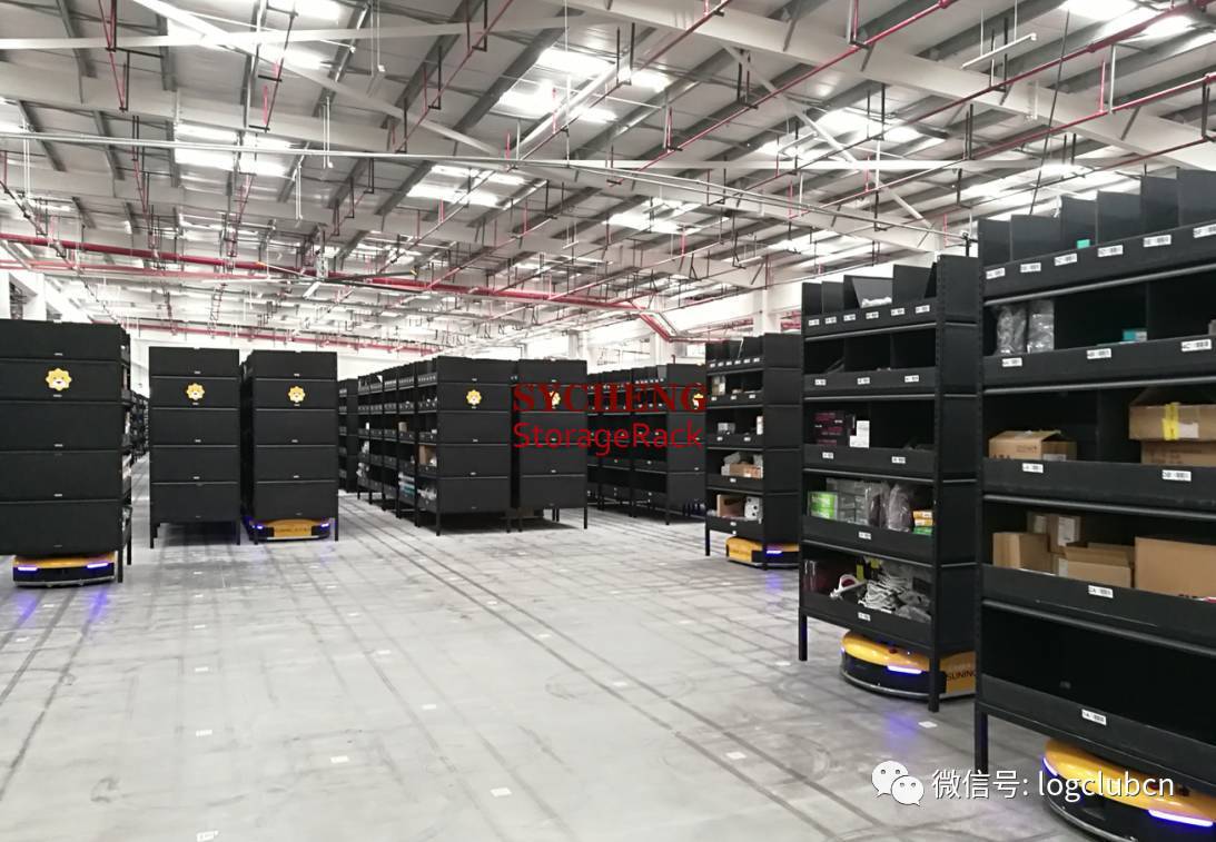 AGV機器人應用之后,貨到人的核心思路是把揀選人員取消,直接把貨架搬到復核包裝人員的邊上由復核打包人員完成揀選,二次分揀,打包復核三項工作,把人員壓到比較低,同時也取消了原來傳輸線完成的位移動作。成千上萬的AGV機器人,以遠遠高于人工的效率、更低的成本和錯誤率,晝夜不停地處理客戶的包裹。